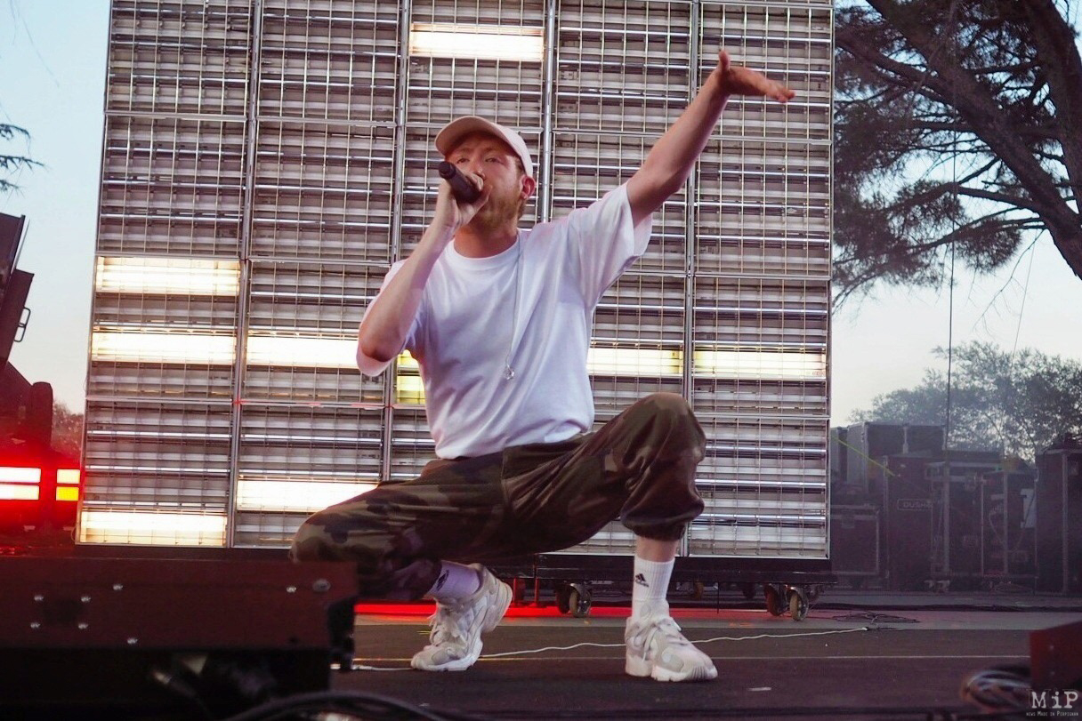 Pour ceux qui ne connaissaient pas Eddy de Pretto, la surprise est grande de le voir débarquer sur la grande scène des Déferlantes avec son smartphone. Un téléphone, c’est le seul instrument qu’Eddy autorise sur la scène. La volonté « d’une scénographie minimaliste … un lien direct avec le public », sans piano, sans guitare. « Quand j’étais petit, on me disait ne te cache pas derrière ta guitare. On ressent rien ! J’ai toujours vécu l’instrument comme une impasse, quelque chose qui vient bloquer l’interprétation, l’échange avec le public. Et c’est ça que j’ai envie d’aller chercher, sans rien on peut se transmettre des choses et se dire des choses ».