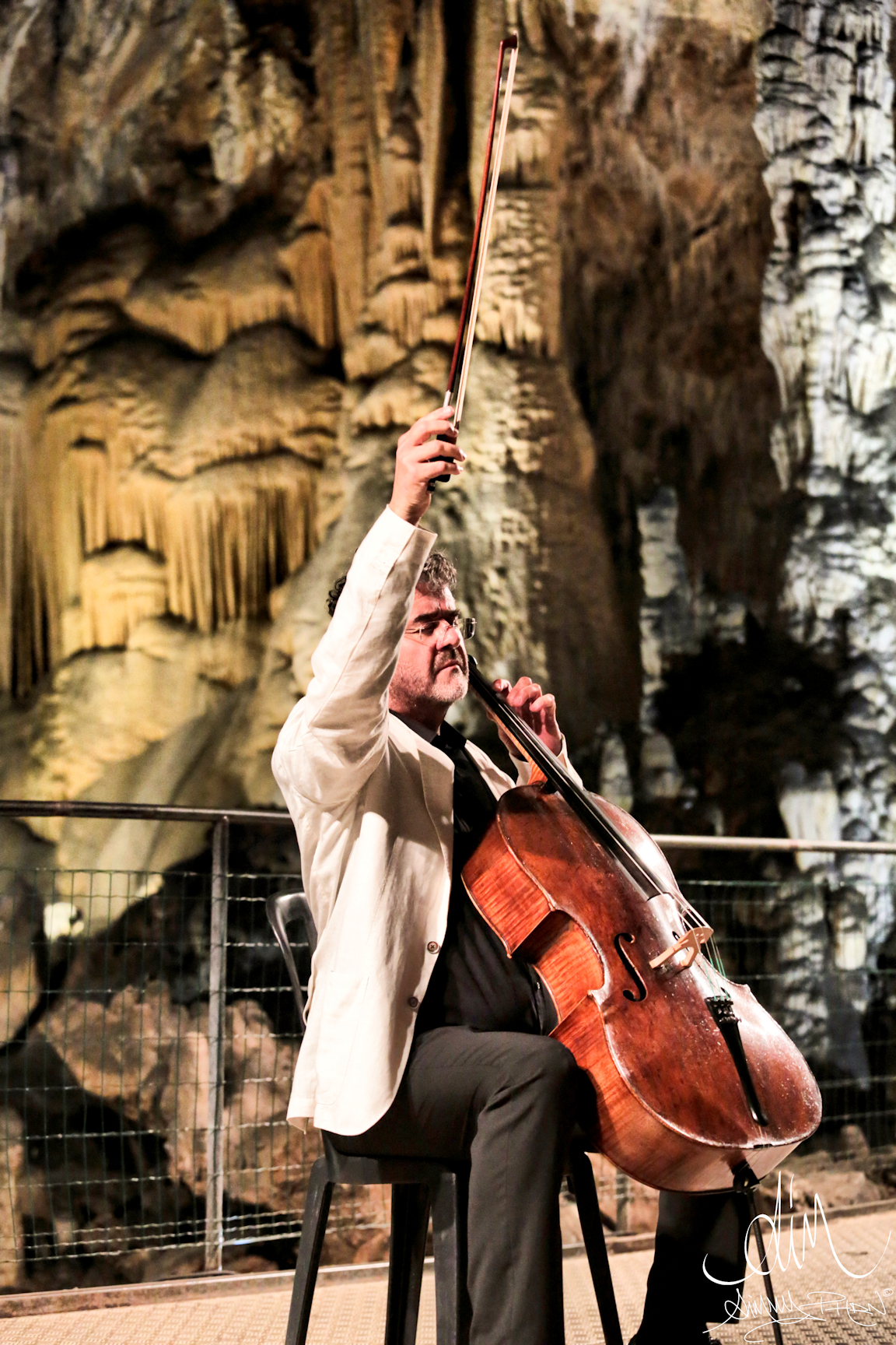 « Laissez-vous entraîner dans un théâtre souterrain à l’architecture naturelle, sculpté avec élégance par l’eau et les éléments calcaires. Tendez l’oreille, vous entendrez des sons, des frôlements, un tourbillon musical, d’ombres et de lumières, de promesses des compositeurs classiques et contemporains invités dans cette cathédrale de verre. La brillante suite n°3 en ut majeur de Bach reflète sur les parois dorées de cette tanière sa virtuosité.