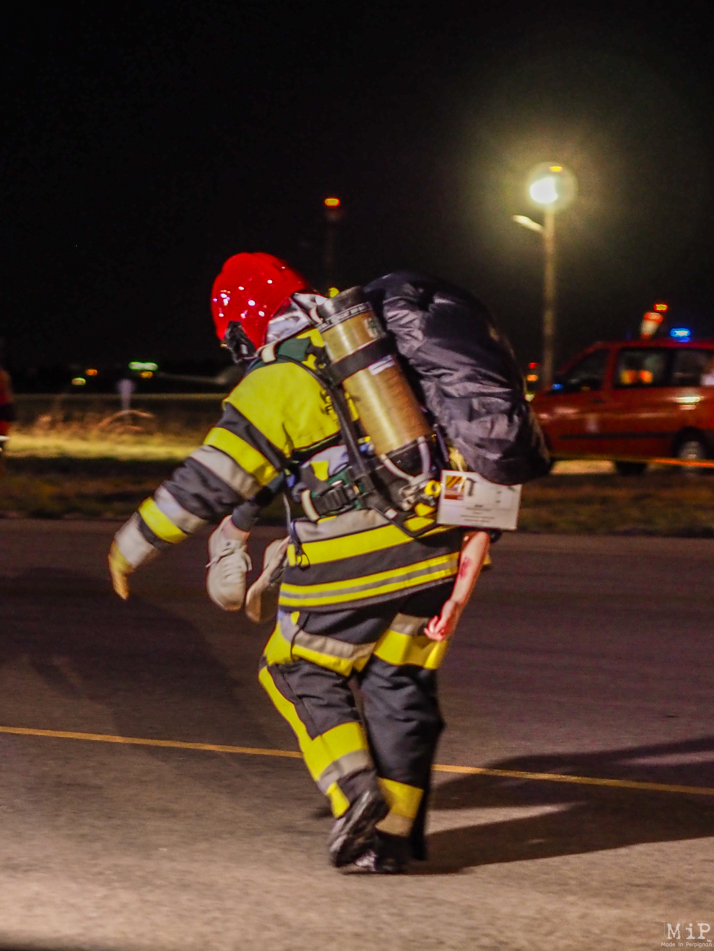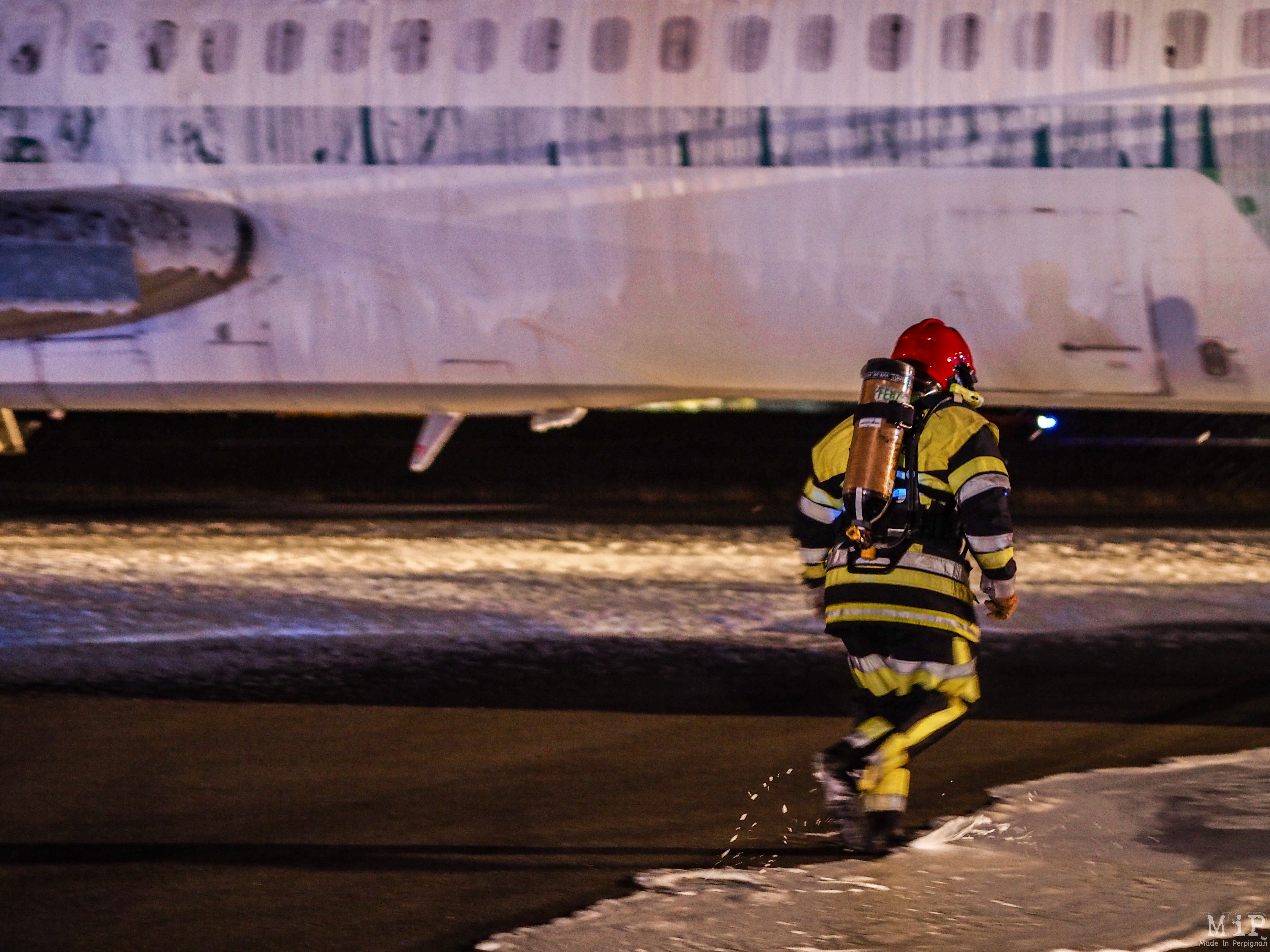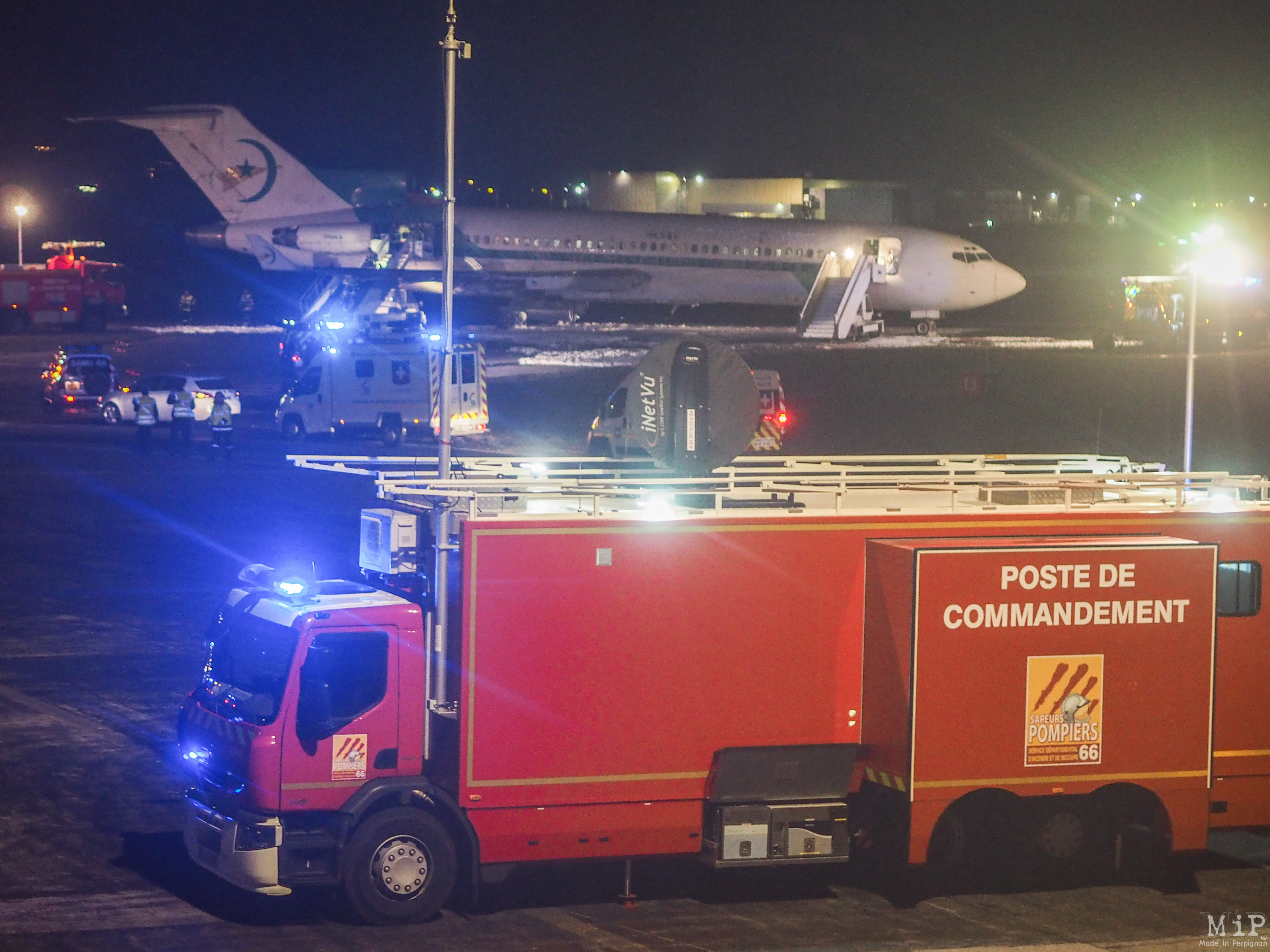 Dans le nuit noire de ce jeudi soir, les lumières bleues des gyrophares s’avancent sirènes hurlantes vers l’aéroport, alors que les équipes du service d’incendie et de secours affecté à l’aéroport est déjà sur place et s’affaire à éteindre les flammes qui embrasent le nez de l’appareil. Avant même que l’épaisse mousse n’ait recouvert l’avion, déjà des hommes équipés de masques et de bouteilles à oxygène pénètrent dans l’habitacle par l’avant et l’arrière du Boeing.