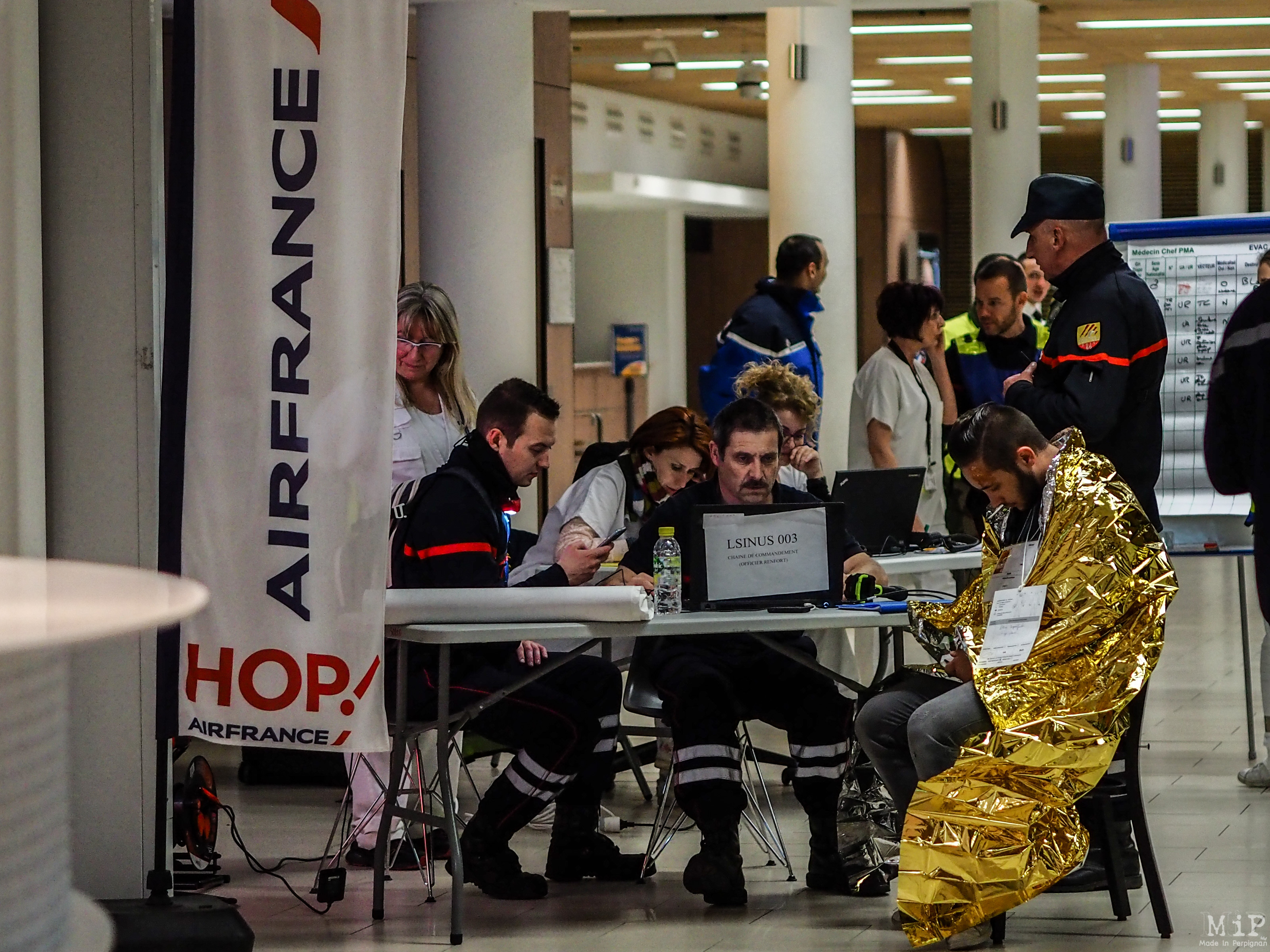 Pendant ce temps, sur la piste, la cellule de commandement opérationnelle se met en place et l’ensemble des services de secours prend en charge les victimes sur le poste médial avancé. Certaines victimes en extrême urgence sont elles immédiatement conduites dans les centres hospitaliers équipés pour les recevoir et notamment celui de Perpignan à seulement quelques centaines de mètres de l’aéroport.